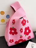 Floral Printed Woven Handbag with Colorful Contrast Accents