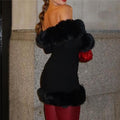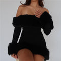 Fluffy Long Sleeve Off-Shoulder Mini Dress