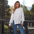 Hooded Lantern Sleeve Sweatshirt With Round Neck And Side Slit