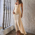 Look absolutely stunning in this Lace Mermaid Fishbone Fitted Strapless Long Dress. The intricate lace detailing and flattering mermaid silhouette will have you turning heads at any special occasion. Perfect for prom, weddings, or a formal event.