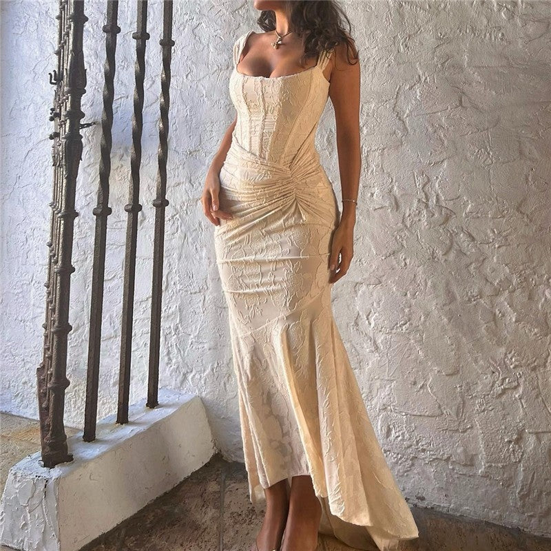 Lace Mermaid Fishbone Fitted Strapless Long Dress