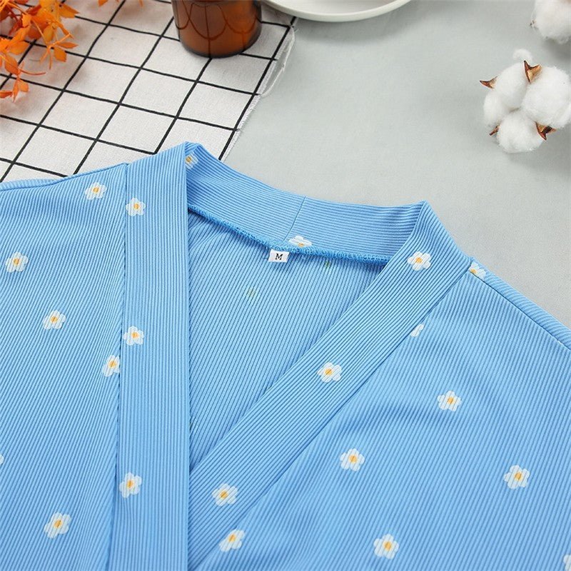 Long Sleeve Waist-Tied Loose Pajama Loungewear with Stylish Print
