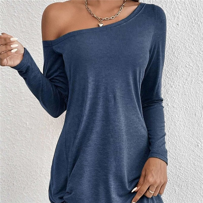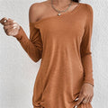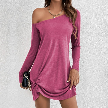 Loose-Fit Long Sleeve Solid Color T-Shirt Casual Dress