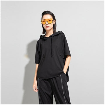Loose Fit Solid Color Hooded Short Sleeve T-Shirt