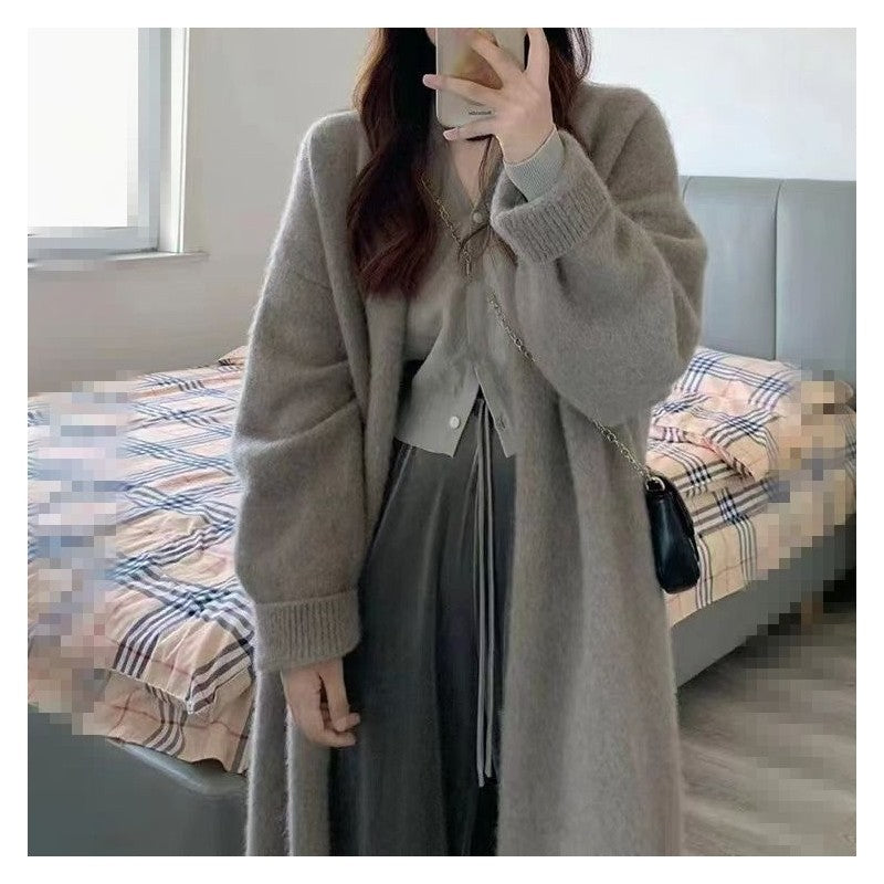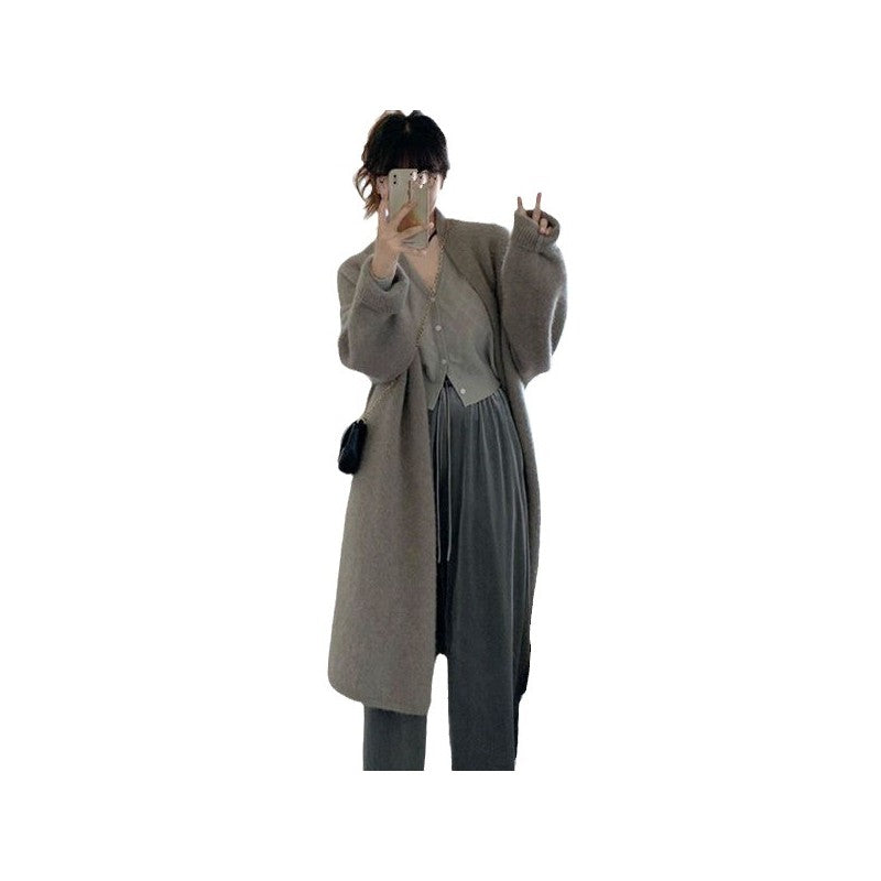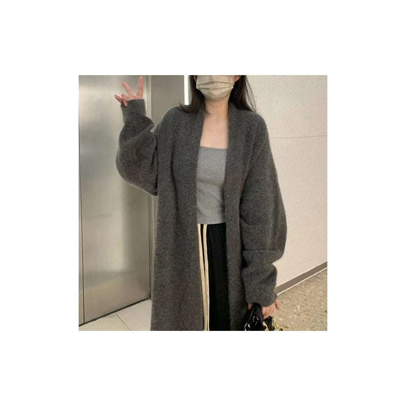 Oversized Solid Color Casual Mid-Length Cardigan Sweater Coat