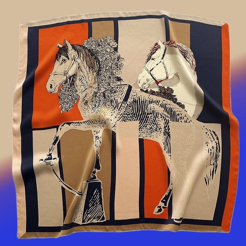 Vintage print square scarf in cotton-blend for a cute, intellectual look. All-match accessory to look younger, perfect for business, gifts, or going out. Artistic retro style with girlish sweetness and light maturity. Stylish selection for leisure fashion in spring, summer, and autumn seasons.