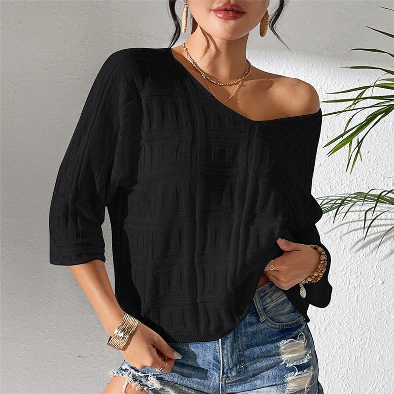 Relaxed V-Neck Knit Sweater in Solid Hue