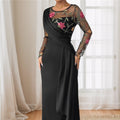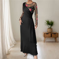Round Neck Embroidered Mesh Long Sleeve Dress