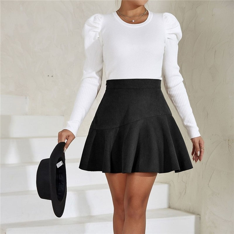 Solid Color Corduroy Zipper Pleated Mini Skirt