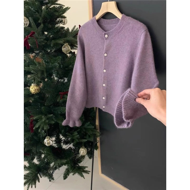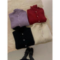 Solid Color Long Sleeve Crewneck Buttoned Knitted Cardigan Sweater