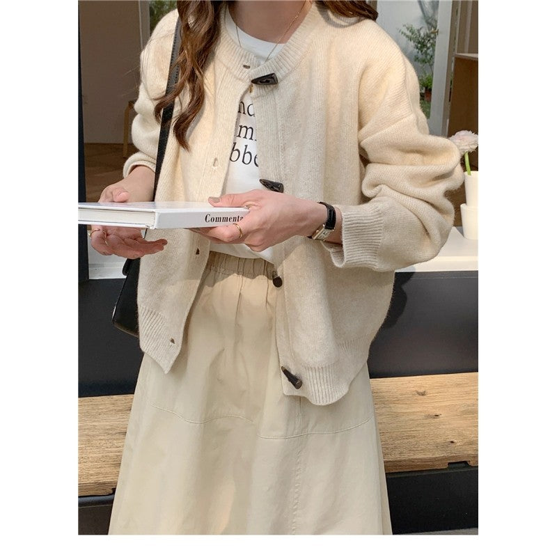 Solid Color Long Sleeve Horn Buttons Thick Cardigan Sweater