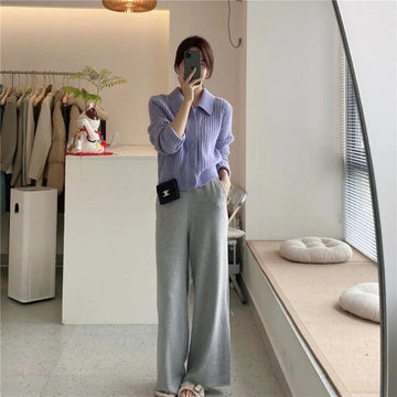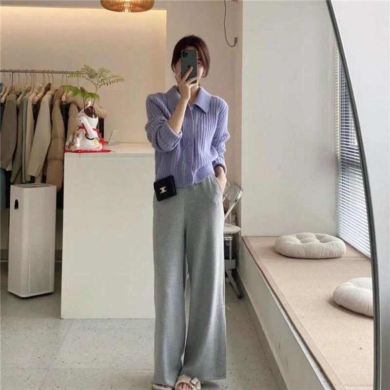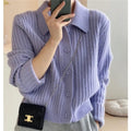 Solid Color Long Sleeve Lapel Single Breasted Casual Cardigan Sweater