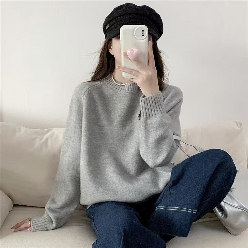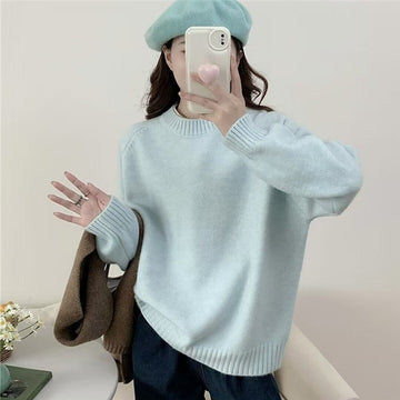 Solid Color Loose Fit Casual Pullover Sweater