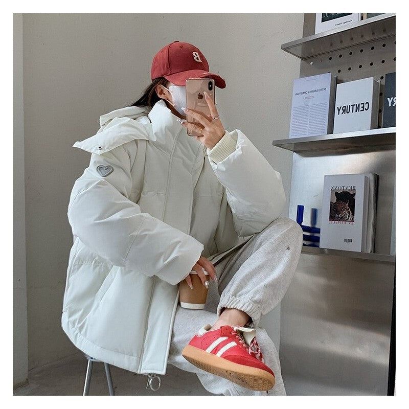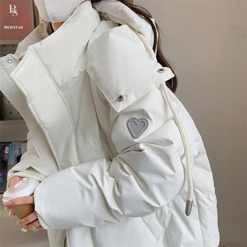 Solid Color Love Heart Print Short Down Cotton Jacket