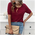 Solid Color Round Neck Hollow Knit Short Sleeve