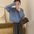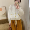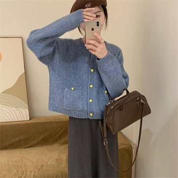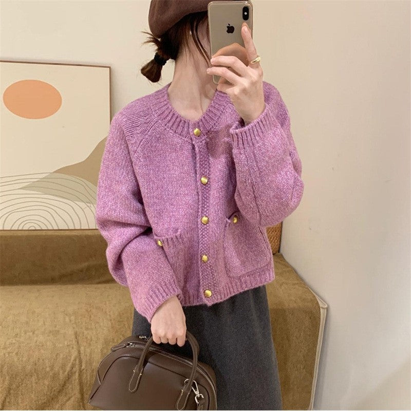 Solid Color Round Neck Short Knitted Cardigan Sweater