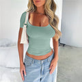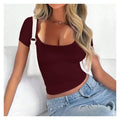 Solid Color U-Neck Slim Fit Crop Top T-Shirt
