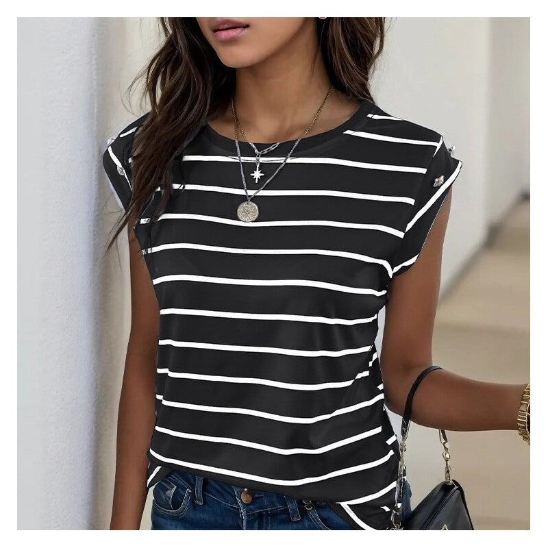 Striped Sleeveless Casual T-Shirt - Fashionable Style