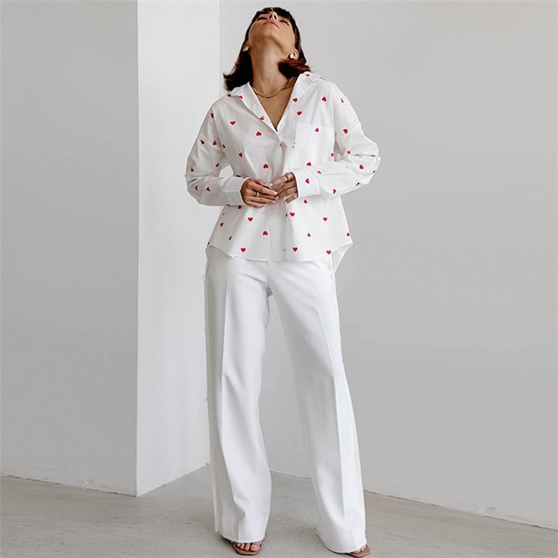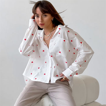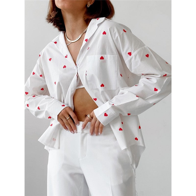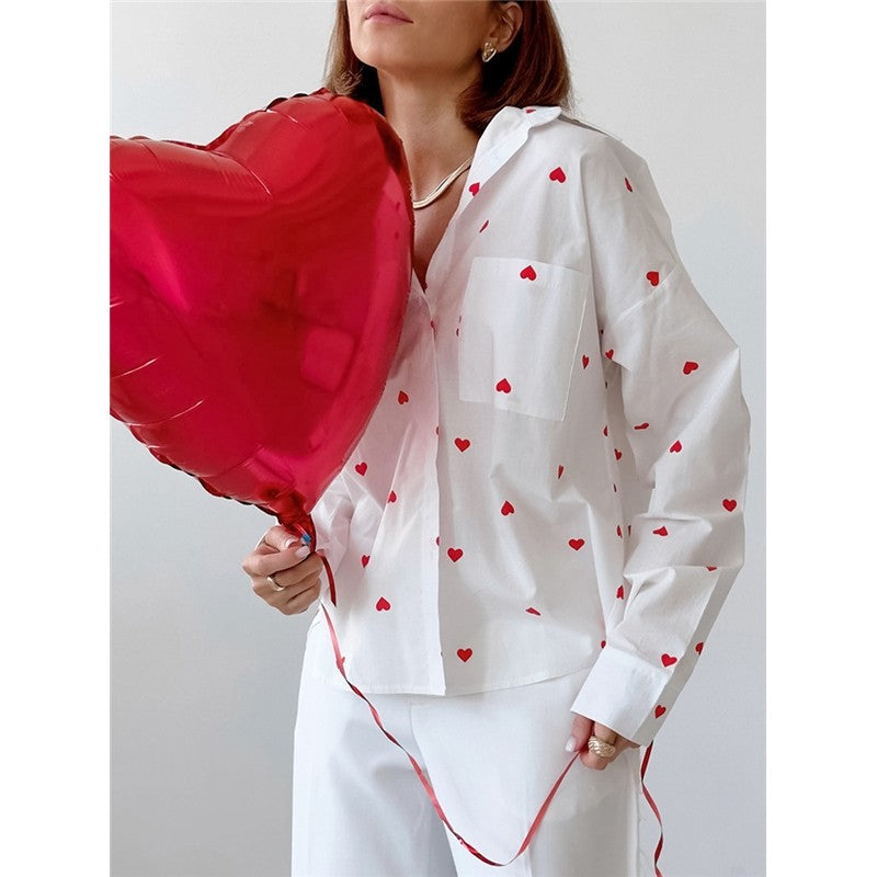 Stylish Women's Long Sleeve Shirt with Floral Heart Print for Ultimate Comfort
