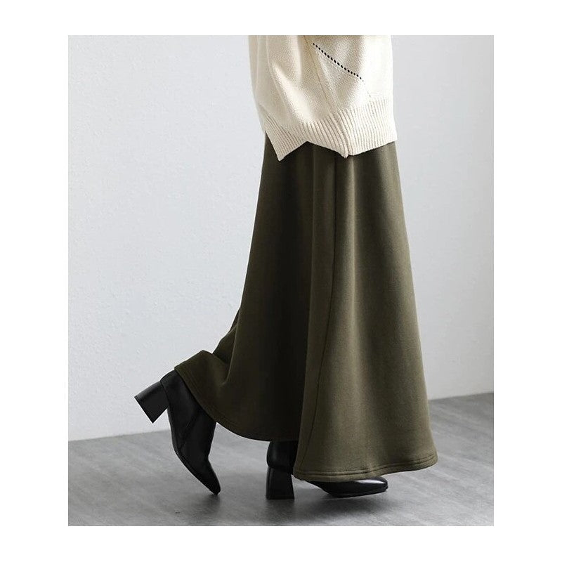 Thickened High-Waisted A-Line Mid-Length Skirt With Fleece