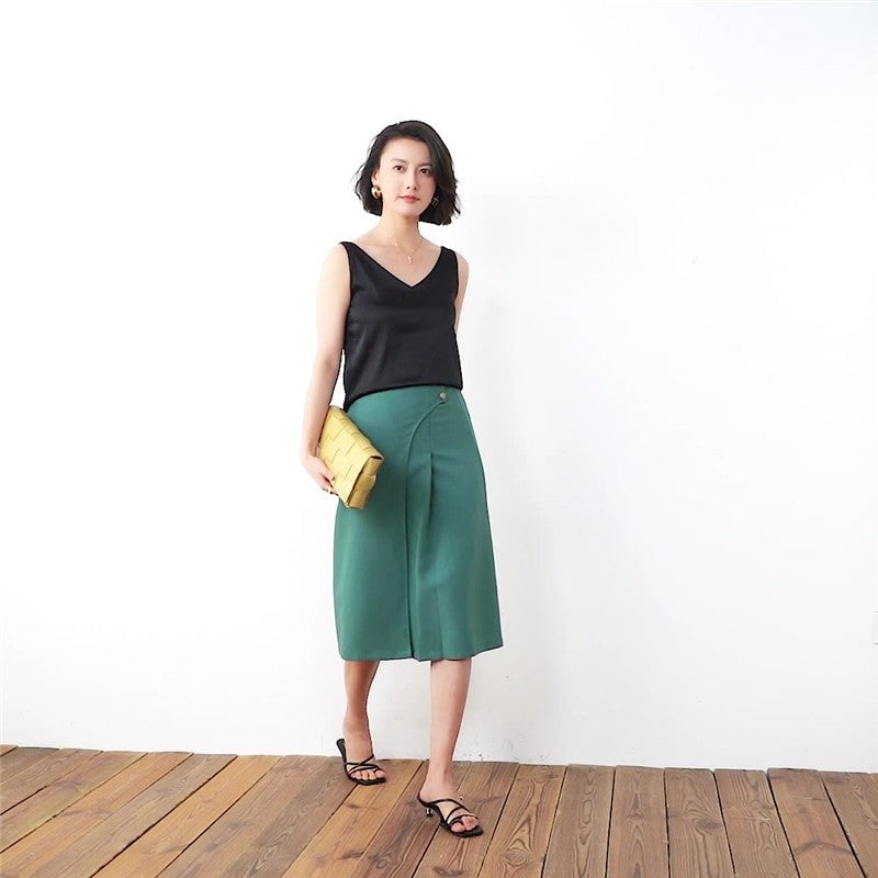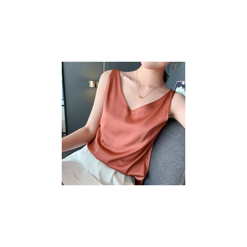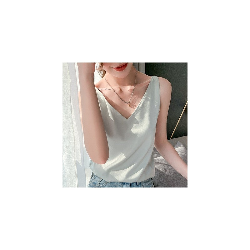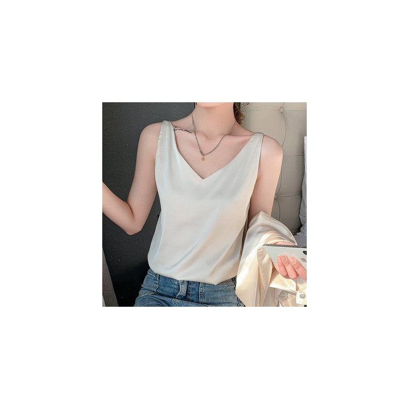 V Neck Satin Spaghetti Strap Tank