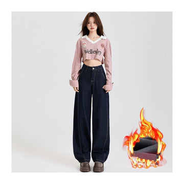 Stay warm and stylish with these high waist fleece-lined 3/4 length jeans, perfect for chilly days.