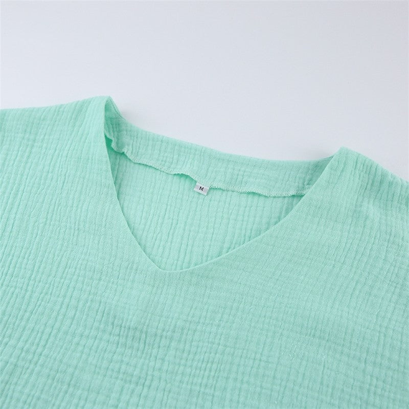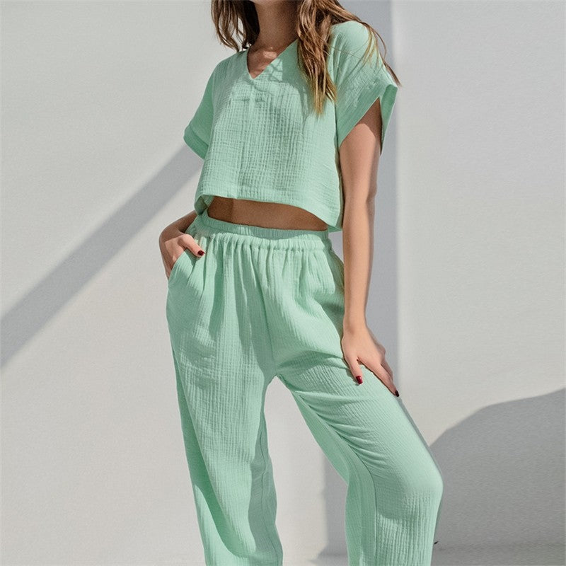 Vibrant Short Sleeve V-Neck Top and Pants Set - Two-Piece Loungewear